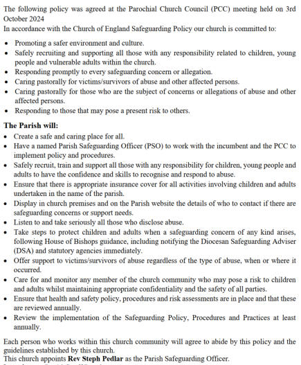 Parish Safeguarding HandbookModel Parish Safeguarding PolicyChurch of EnglandThe Parish of St Mary’s Houghton with Wyton-SAFEGUARDING POLICYPROMOTING A SAFER CHURCH